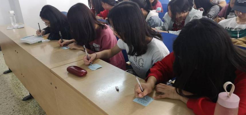 本次活动由宣讲团成员杜熠秋主持,分齐唱国歌、观看视频、分享微课、书写感悟四项进行。本次活动在慷慨激昂的国歌声中拉开了序幕,随后,同学们观看了有关革命先烈的短视频,充分了解了其博大丰富的精神内涵,保家卫国的爱国精神,以及坚忍不拔的顽强意志。接着,理论宣讲团成员胡霜为我们讲述了题为“不忘初心,注入新思想,为祖国而奋斗”的微课,让同学们更加深刻地理解了新青年的历史使命以及该如何将新思想贯彻到自己的奋斗青春中。最后,大家写下自己的内心感悟和今后的奋斗目标,坚定初心,决心为“祖国兴”而奋斗。此次“不忘初心记使命,奋斗青春祖国兴”新青年新思想活动以全体同学合影留念落下帷幕。