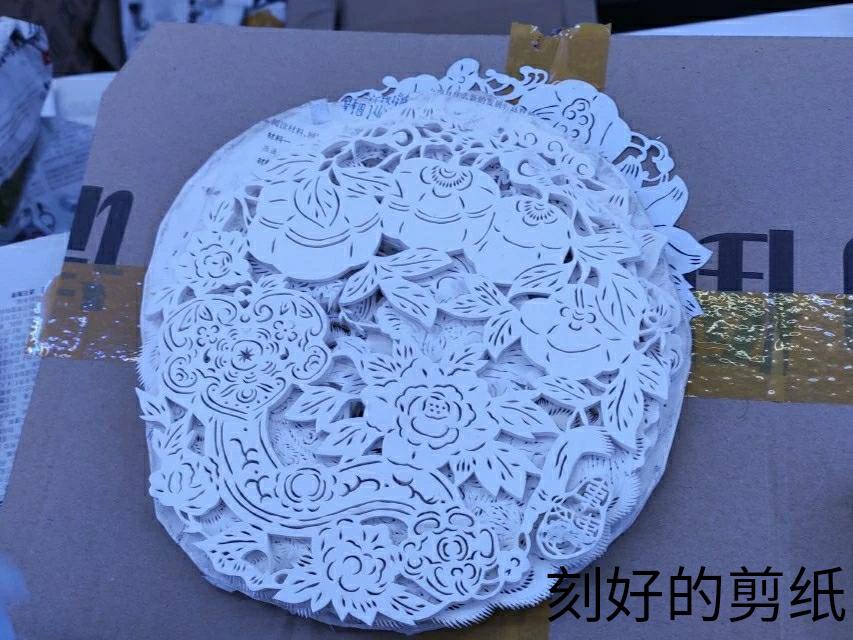 进村后通过对工作坊、厂家简单的参观,使我见识到了剪纸各个步骤以及区域划分,以及每个步骤负责的手艺人。我们蔚县人一般把剪纸称为"窗花"。蔚县剪纸以窗花见长,“天皮亮”可以说是最早的窗花形式,即在云母薄片上绘图着色进行装饰。早期当地还盛行供花鞋、荷包、枕头上刺绣用的“花样”。后来河北武强县的木版水印窗花传入,吸取其色彩特点,仿“天皮亮”透明效果,以刻代剪,形成蔚县剪纸的独特风格。蔚县剪纸以“阴刻”和“色彩点染”为主,故有“三分工七分染”之说。