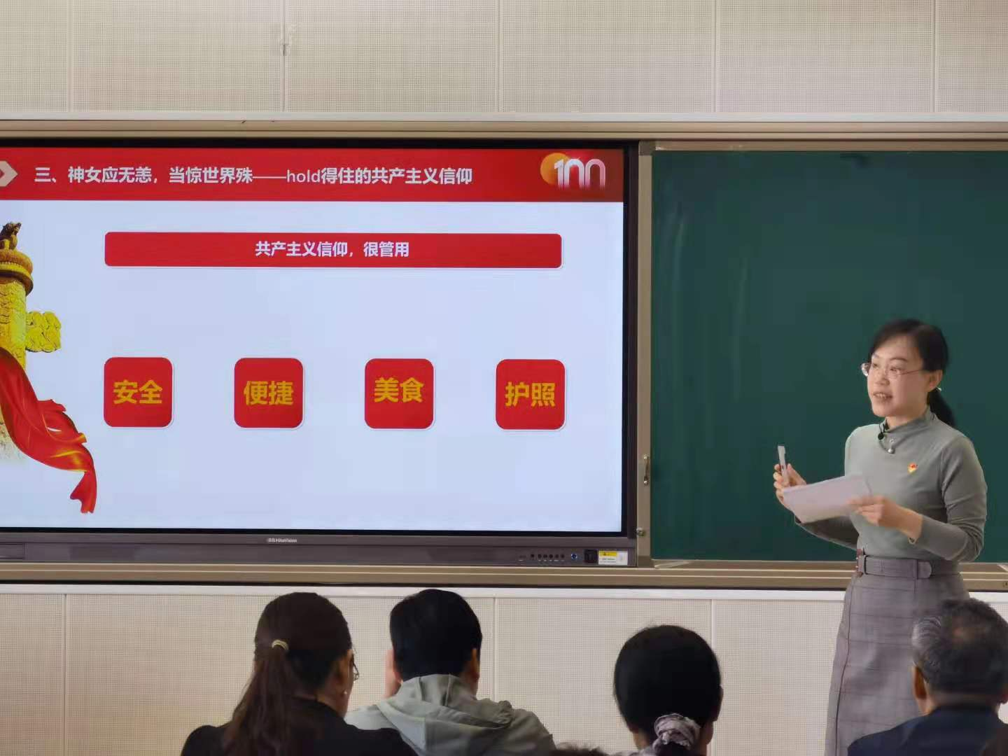 黄老师从“对党忠诚,信仰坚定”、“信仰是精气神、是道德底线”方面指出新时代高等教育者及青年学生必须坚定信仰;从红军战士们在长征路上始终不畏牺牲、勇往直前,始终坚信光明和胜利就在前方的信仰中汲取精神力量,取得了长征的伟大胜利,道出了作为中华民族一分子应该时刻怀揣崇高的共产主义信仰;并结合当前国家富强、人民幸福的生活实例进一步诠释了坚定共产主义信仰下新中国取得的伟大成就,激励着一代代为民族复兴继续征程。