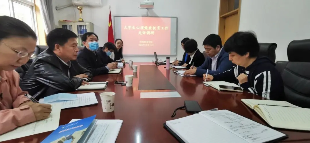 10月15日上午,校党委副书记刘建平来冰球官网走访调研大学生心理健康教育工作,学生处负责人及相关工作人员陪同,冰球官网全体领导班子成员和辅导员参加。