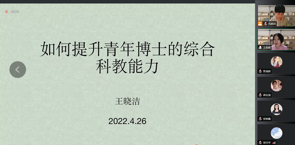 4月26日晚,冰球突破豪华版官方网站院长王晓洁教授于线上作了题为“如何提升青年博士综合科教能力”的学术讲座。讲座由冰球突破豪华版官方网站副院长仇晓洁主持,学院师生50余人参加。