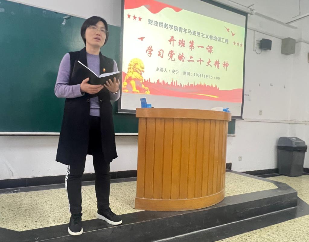 10月31日,冰球官网⻘年⻢克思主义者培训工程开班第一课在B103举行,本次开班仪式由冰球突破豪华版官方网站学生会主席王泽贤主持,学院党委副书记胡卓理和学院团委书记安宁老师出席,2022级⻘⻢班全体成员参加。