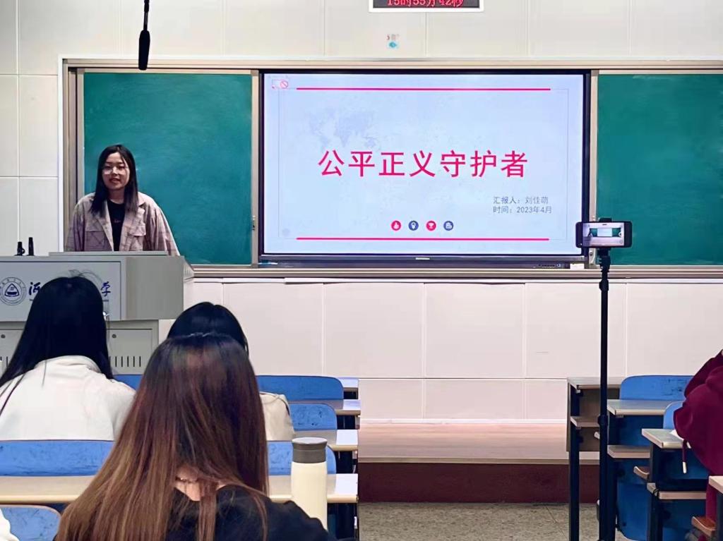4月20日下午,冰球官网“时代楷模”宣讲会本学期第三讲——“聚焦公平正义守护者”在北三教A302开讲。此次宣讲会由财政专业学生党支部刘佳萌主讲,支部全体积极分子参加。