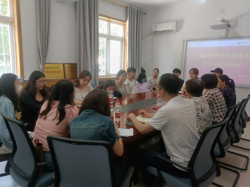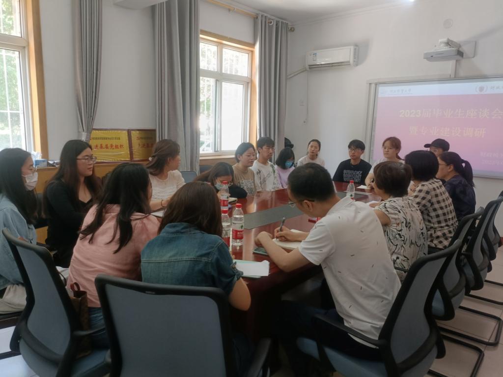 为了更好地倾听毕业生心声,充分了解毕业生学习、生活、就业情况,6月5日冰球突破豪华版官方网站在学院会议室召开了2023届毕业生座谈会暨专业建设调研。副院长温立洲主持会议,党委副书记胡卓理及各系的系主任出席了此次会议。