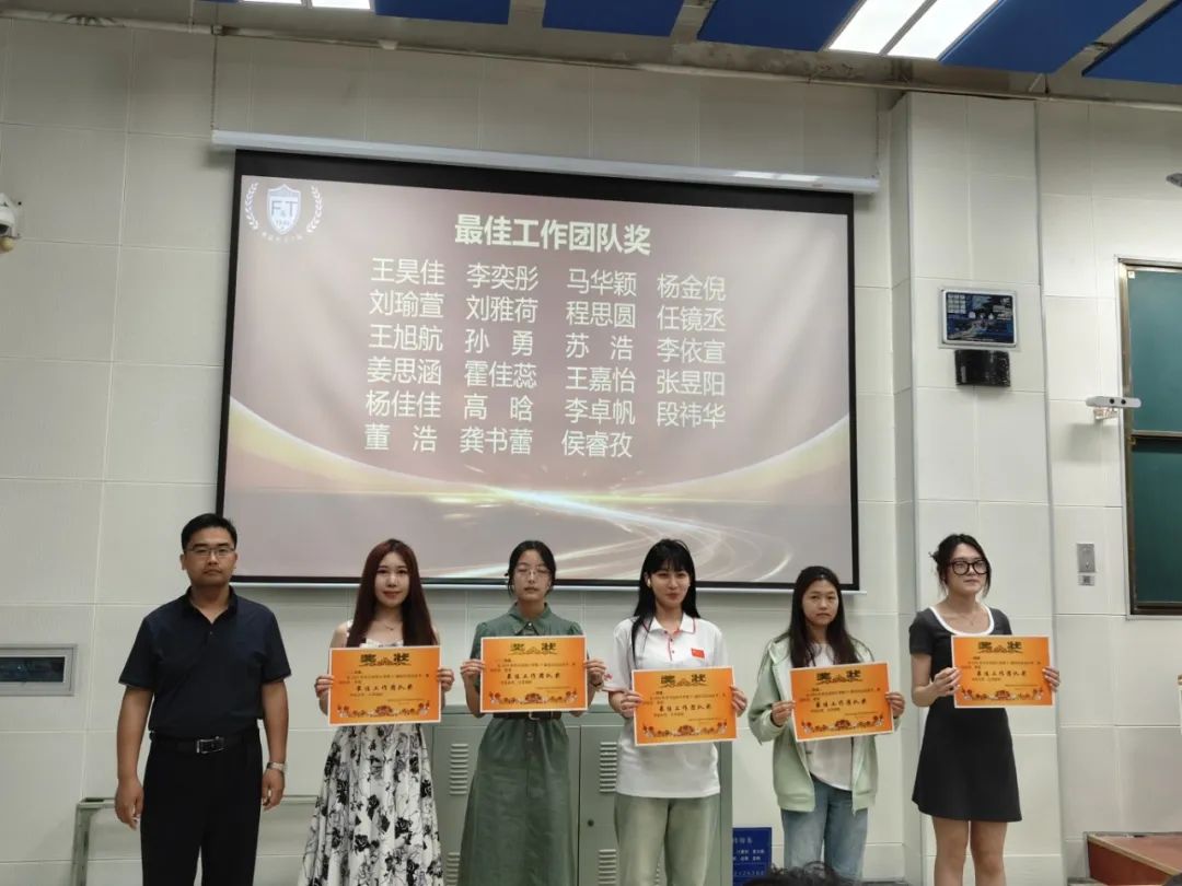 王凤飞书记为获得了优秀团体奖和最佳工作团队奖的学生颁发了奖状。