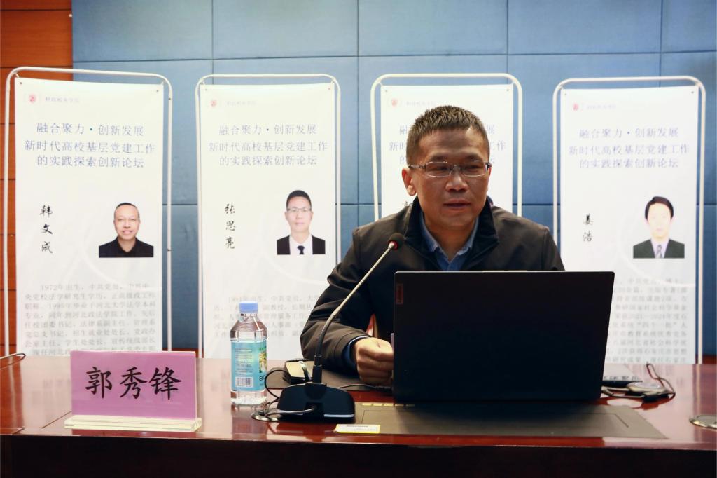 作为发起人,王凤飞在致辞中诚挚感谢各兄弟院校嘉宾的到来,他讲到,为深入贯彻党的教育方针,提高党建育人的实效性,推动学院“深耕四个课堂”一流党建活动的深入开展,特举办此次交流培训会,他表示,希望通过此次交流会能够进一步强化兄弟院校部门间的党建工作交流,探讨出高校基层党建工作的创新路径和实践经验。