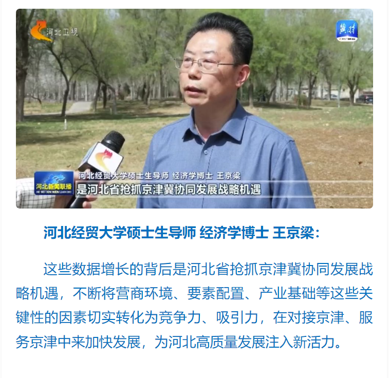 冰球官网教师王京梁接受河北新闻联播采访。京津研发、河北转化,是京津冀协同创新体系的重要内容。冰球官网硕士生导师、经济学博士王京梁指出京津科技成果增长的背后是河北省抢抓京津冀协同发展战略机遇,通过关键性因素切实转化为竞争力、吸引力,为河北高质量发展注入新活力。