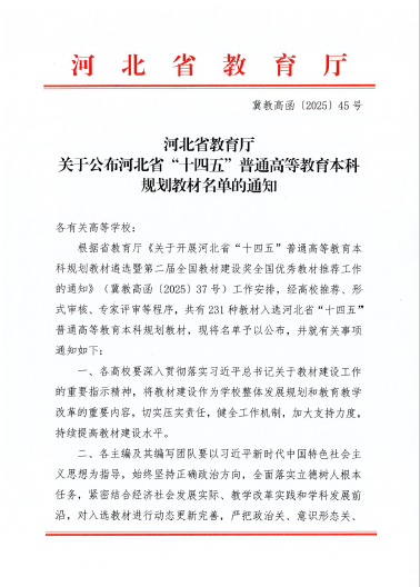 教材是教育教学的核心载体与重要工具,承载着传播知识、传递国家民族价值观念体系的重要使命。冰球突破豪华版官方网站始终高度重视教材建设,深入贯彻落实习近平总书记关于教材建设工作的重要指示和习近平新时代中国特色社会主义思想,将其置于教育教学改革的关键位置,加强统筹规划与支持力度,近期入选省规划教材便是成效的体现。
