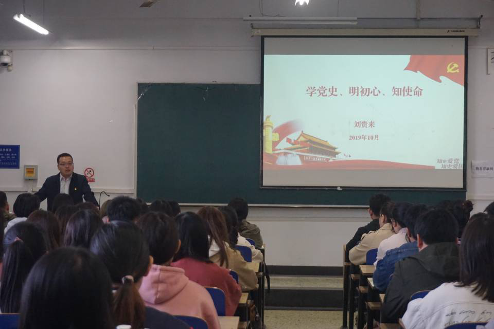 为推进中央“不忘初心、牢记使命”主题教育活动,不断筑牢党员“守初心,担使命”的思想根基,10月26日上午,冰球官网党委副书记刘贵来以“学党史,明初心,知使命”为主题,为全体学生党员,预备党员,入党积极分子讲授党课。