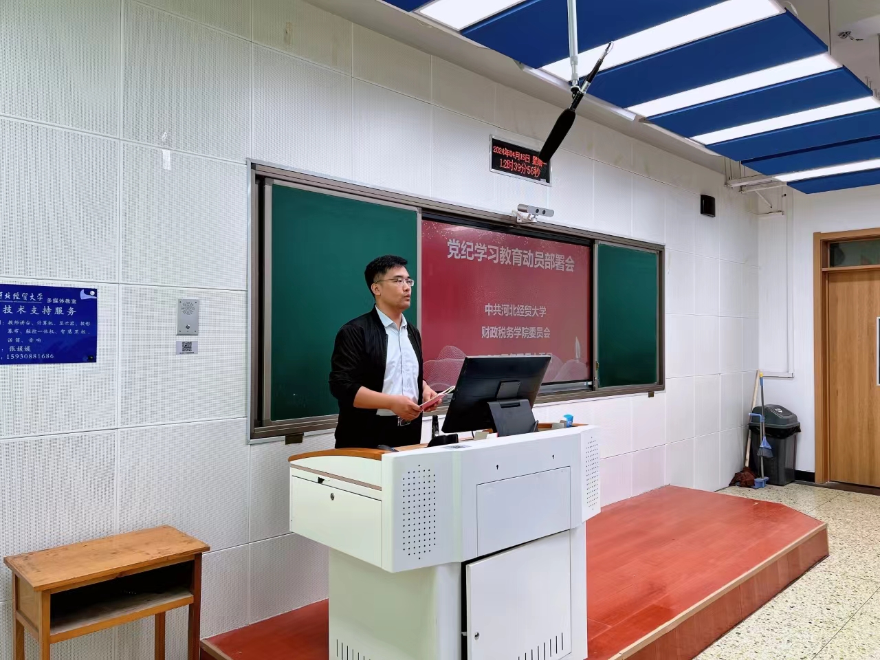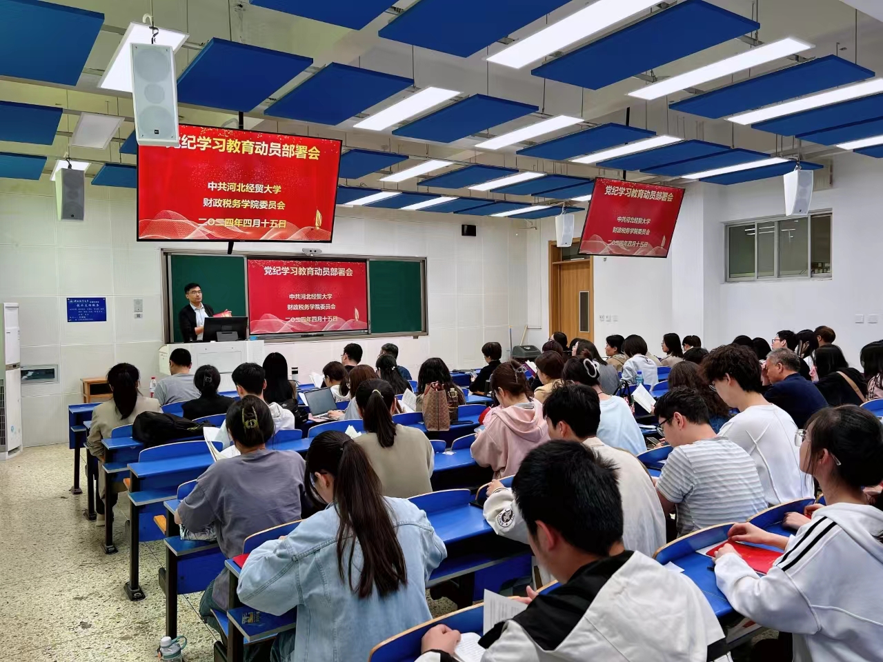 冰球突破豪华版官方网站于2024年4月15日召开党纪学习教育动员部署会,院党委书记王凤飞主持会议并作启动部署,学院领导班子和全体教师、部分学生党员参会。
