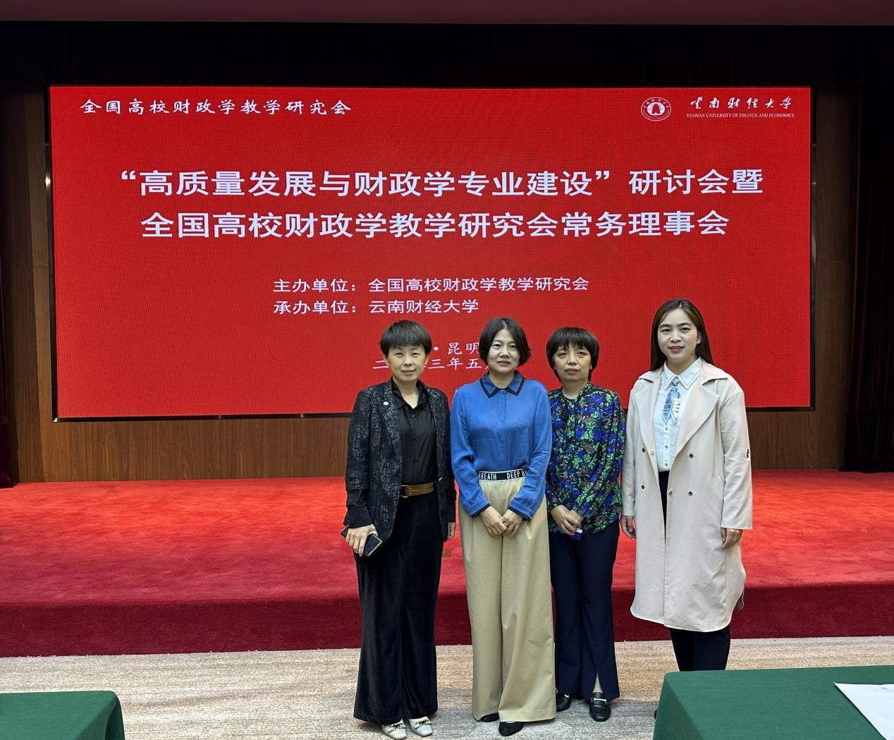 2023年5月13日,“高质量发展与财政学专业建设” 研讨会暨全国高校财政学教学研究会常务理事会在昆明召开,冰球突破豪华版官方网站院长王晓洁带队,副院长温立洲、副院长仇晓洁、财政系主任李玉姣一同前往。本届会议由云南财经大学财政与公共管理学院承办,来自全国30多所高校及相关单位的代表120余人参加会议。