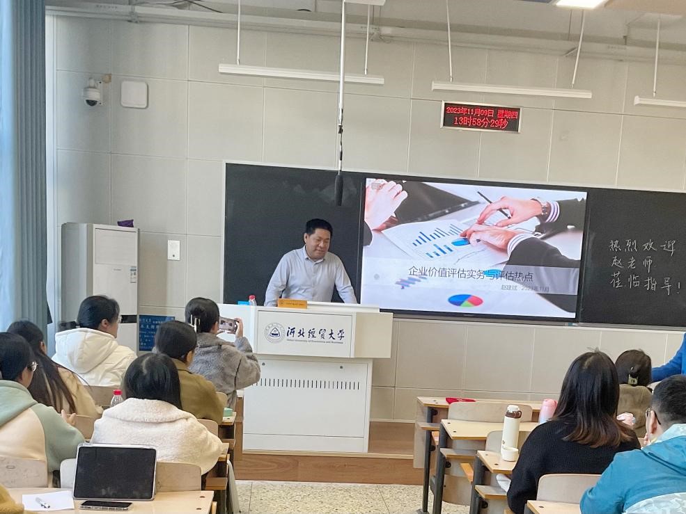 为进一步深化资产评估专业研究生对企业价值评估的了解,11月9日下午,冰球突破豪华版官方网站邀请北京中企华资产评估有限责任公司河北分公司总经理赵建斌,作题为“企业价值评估实务与评估热点”的学术讲座。副院长仇晓洁、部分资产评估专业教师及2023级资产评估专业研究生参加了此次讲座。
