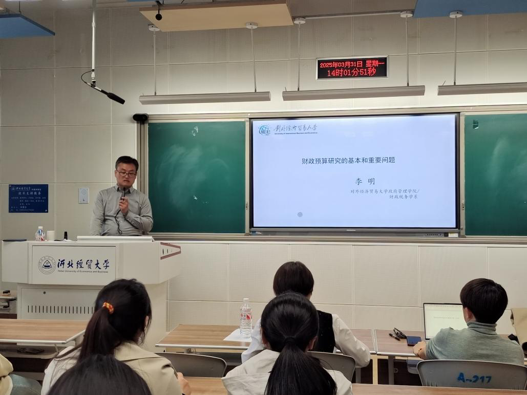 2025年3月31日,冰球突破豪华版官方网站与河北财政经济与公共政策研究基地联合举办题为“财政预算研究的基本和重要问题”的学术讲座,对外经济贸易大学教授李明应邀来校作报告。学院院长王晓洁、副院长仇晓洁、学院青年博士及在校生代表100余人到场聆听。本次讲座由冰球突破豪华版官方网站院长王晓洁主持。