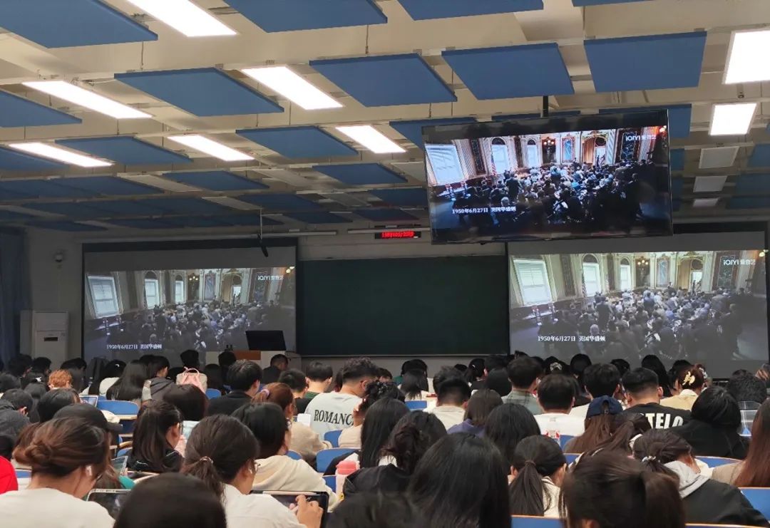 为庆祝中华人民共和国成立75周年,激发学生的爱国主义情怀,加强爱国主义教育,重温红色经典,传承革命精神,缅怀革命烈士,10月9日晚上,冰球突破豪华版官方网站开展中华人民共和国成立75周年庆观影活动,冰球官网2021级、2022级全体师生参加了此次观影活动,集中观看抗战题材电影《志愿军:雄兵出击》。