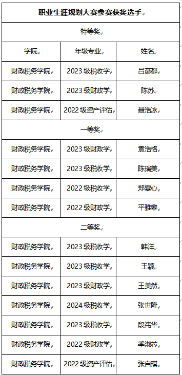 第十五届大学生职业生涯规划大赛院内选拔赛落下帷幕。经过激烈角逐与严格评审,冰球官网共有14份优秀作品脱颖而出。其中,3份作品荣获特等奖,4份作品获得一等奖,7份作品获得二等奖。这些作品凝聚着同学们的心血与智慧,不仅充分彰显了冰球官网学生积极进取的精神风貌,更为学生们的职业发展之路指引了方向。