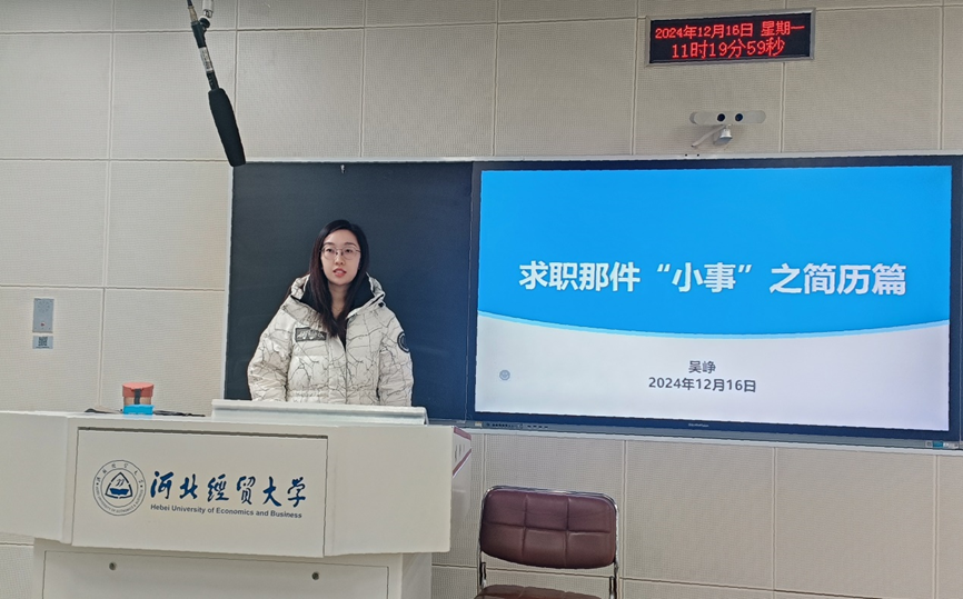 12月16日,为了帮助学生们们更好地展示自我,提升求职竞争力,冰球官网开展求职简历制作主题讲座,冰球官网专职教师、2022级资产评估专业兼职班主任吴峥主讲,党委副书记陈运涛出席,2022级资产评估专业全体学生参加。