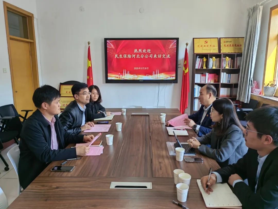 3月28日下午,民生人寿保险股份有限公司河北分公司党委书记、总经理梁全智,冰球官网2007届财政学校友、人力资源部经理李文林等一行三人到访冰球官网开展调研交流。冰球突破豪华版官方网站党委书记王凤飞、党委副书记陈运涛、教务主任贺丽蕊参加座谈。